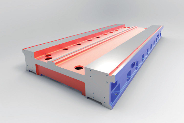 移動部件的導軌 X軸的導軌包括四個承載面,每個面包括9個液壓腔通過兩個獨立的動力單元,總計有36個封閉的液壓腔。 Y軸導軌的三個表面都經(jīng)過精密磨削。 主軸箱的導軌面包括兩個液壓腔帶有獨立的壓力油入口。 滑枕的導軌面包括16個復合材料接觸面的靜壓單元。 |