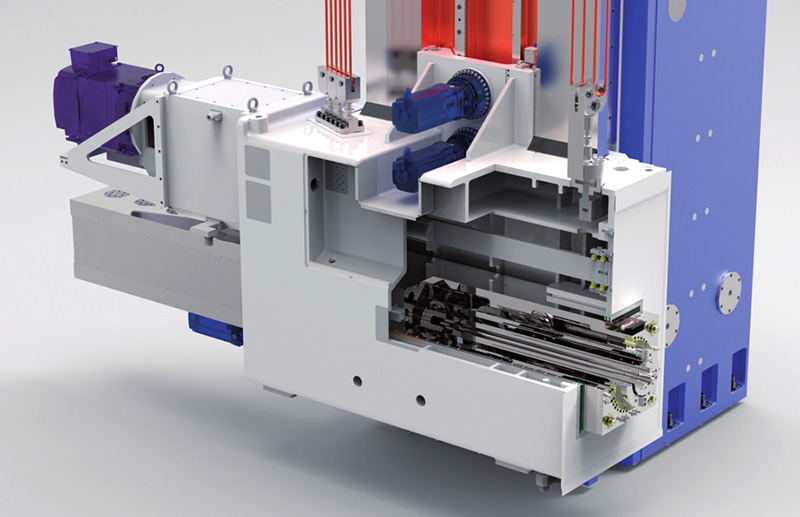 Y,Z,W軸的驅(qū)動 Y,Z,W三軸采用獨立的電力控制伺服驅(qū)動。X軸采用兩個電力控制伺服驅(qū)動系統(tǒng)。W,Z軸采用滾珠絲杠傳動。W,Z軸采用齒輪箱驅(qū)動。 |