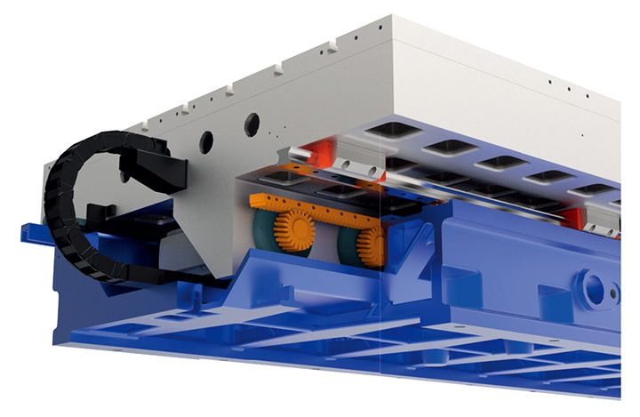X,Y軸采用帶有主從消隙機構(gòu)的齒輪齒條傳動。